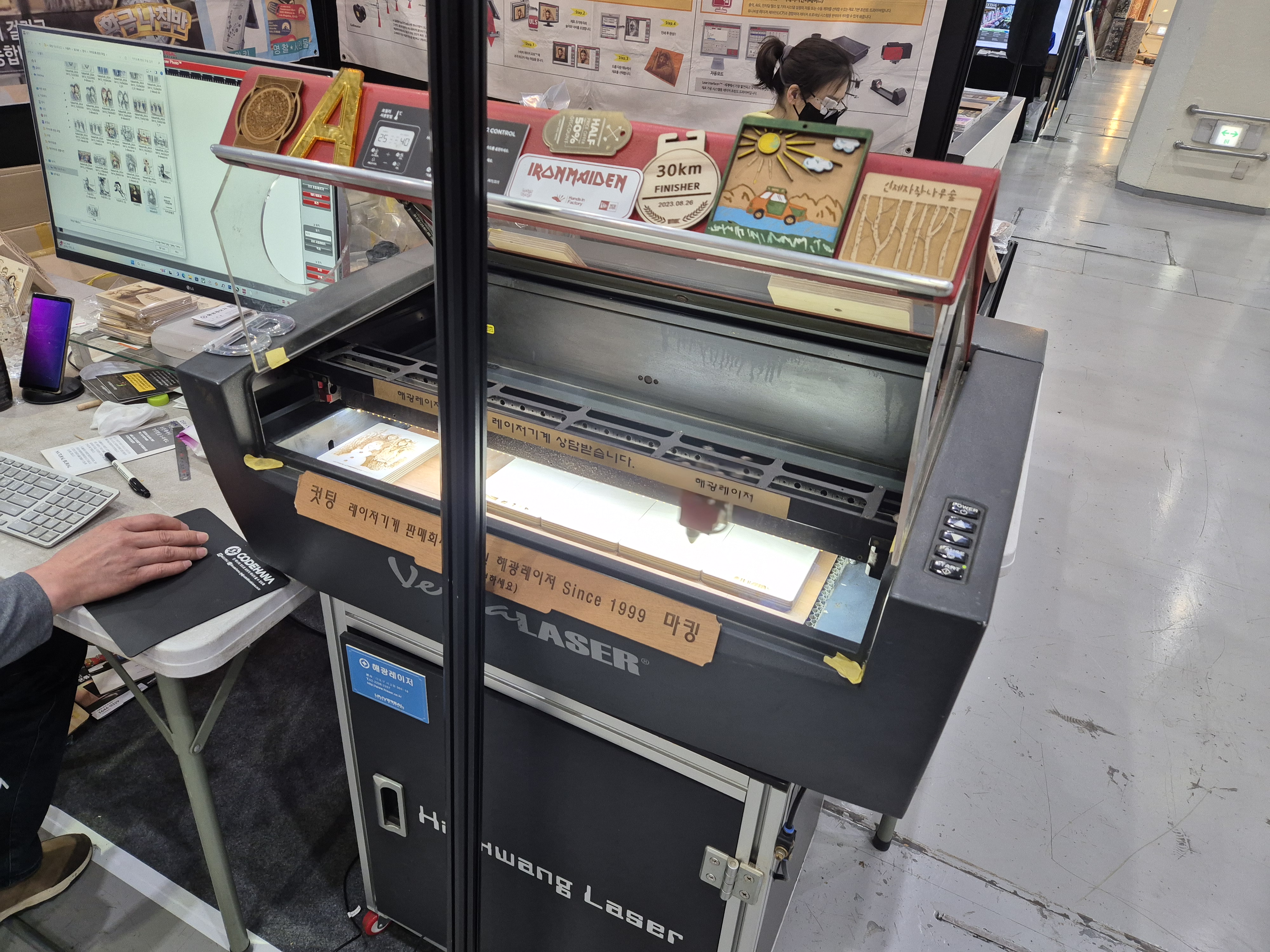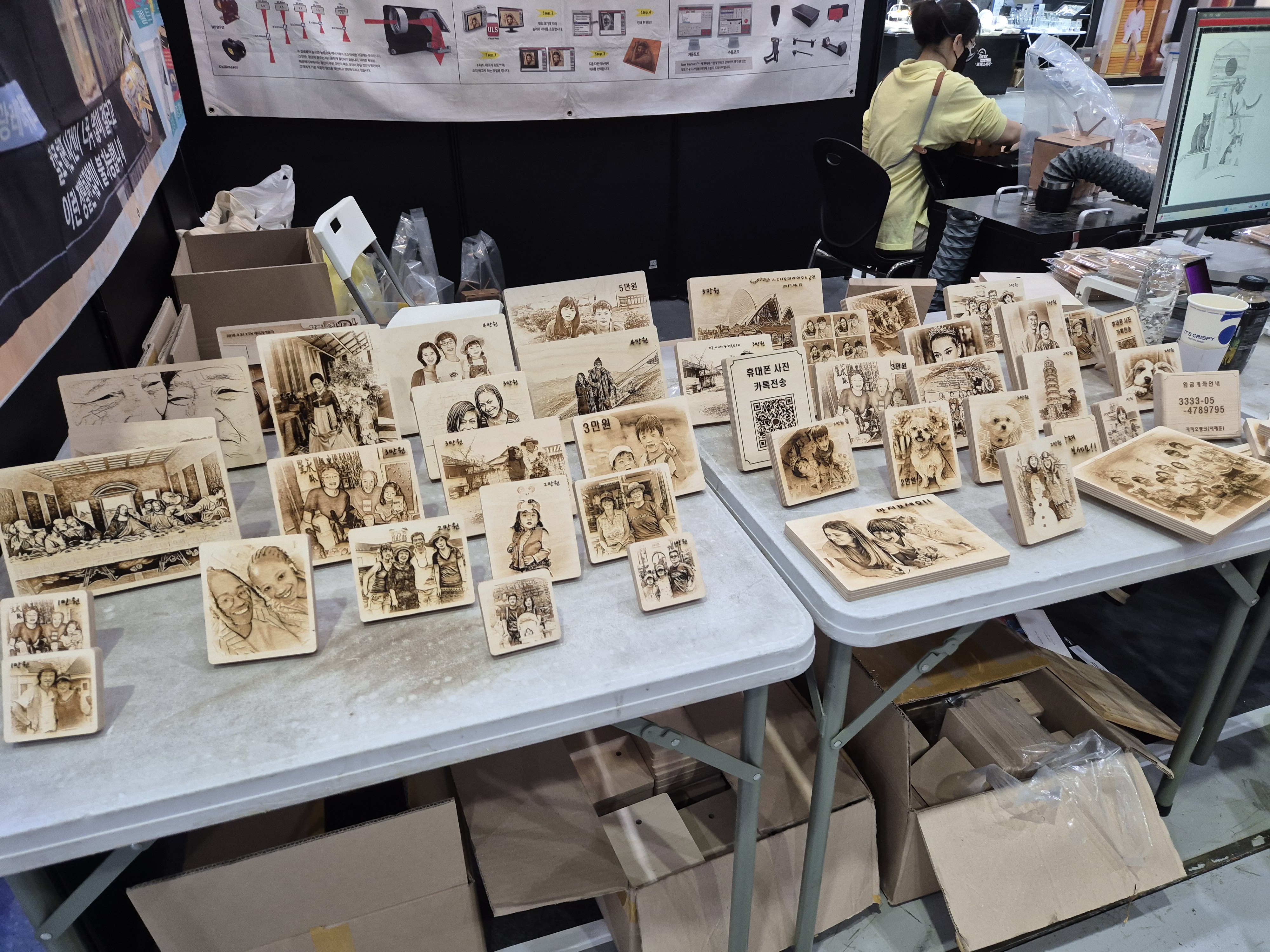 사실 저는 이곳을 처음부터 알고 있지는 않았지만, 최근에 진행되었던 코엑스 하우징브랜드페어에서 만나게 되었습니다. 여기는 딱 봐도 레이저 기기들을 취급하는 곳인데, 서비스 중 하나로 목판에 사진 인쇄를 해주는 상품을 판매하시는 것 같았습니다.